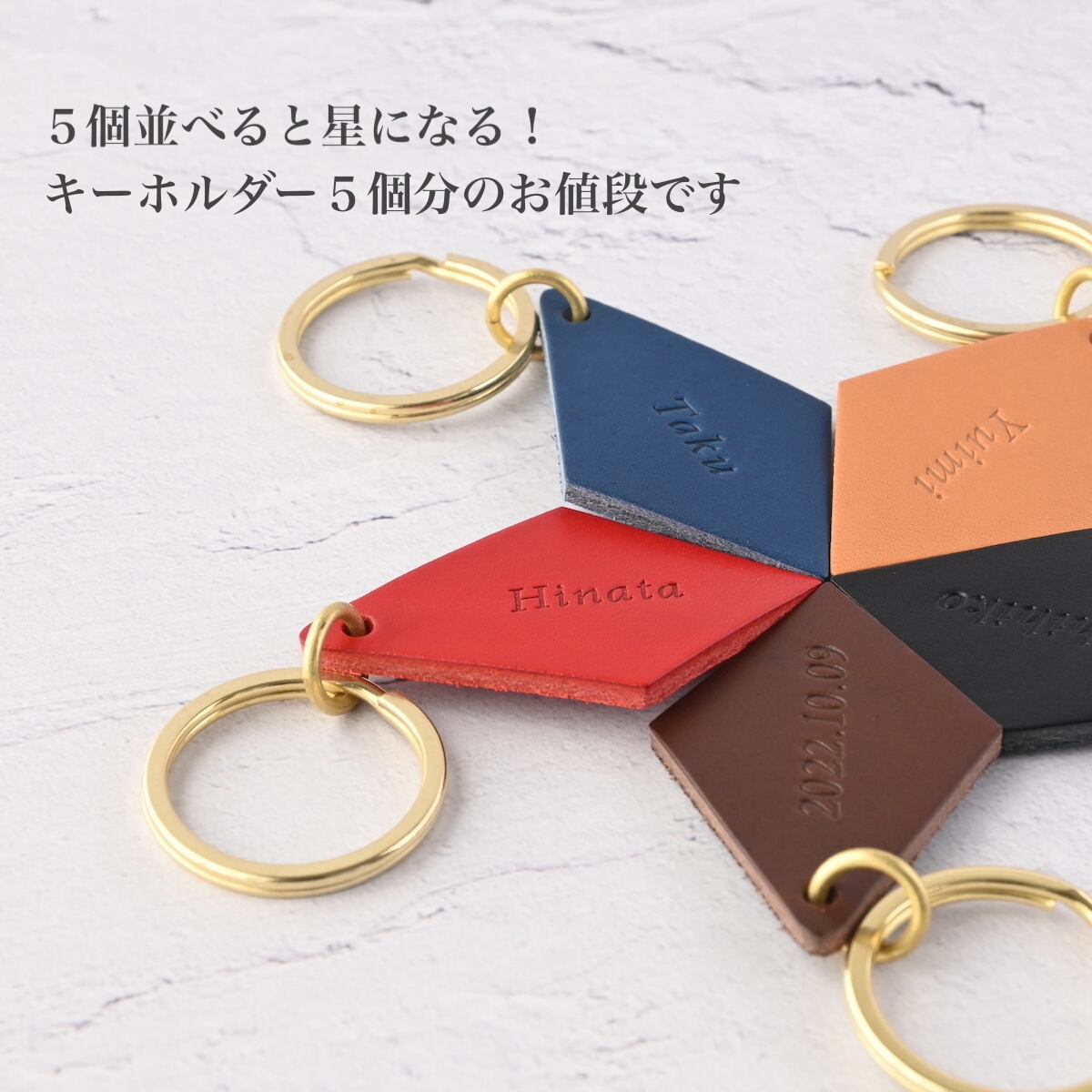 仲良し5人組セット/名前入れ/卒業やお揃いの記念に♪イタリアンレザーのキーホルダー